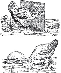 Имеем ли мы, однако, в этом случае процесс, похожий на речевое общение человека? Некоторое внешнее сходство между ними, несомненно, существует. Внутренне же эти процессы в корне различны. Человек выражает в своей речи некоторое объективное содержание и отвечает на обращенную к нему речь не просто как на звук, устойчиво связанный с определенным явлением, но именно на отраженную в речи реальность. Совсем другое мы имеем в случае голосового общения животных. Легко показать, что животное, реагирующее на голос другого животного, отвечает не на то, что объективно отражает данный голосовой сигнал, но отвечает на самый этот сигнал, который приобрел для него определенный биологический смысл. Так, например, если поймать цыпленка и насильно удерживать его, то он начинает биться и пищать; его писк привлекает к себе наседку, которая устремляется по направлению к этому звуку и отвечает на него своеобразным квохтанием. Такое голосовое поведение цыпленка и курицы внешне похоже на речевое общение. Однако на самом деле этот процесс имеет совершенно другую природу. Крик цыпленка является врожденной, инстинктивной (безусловнорефлекторной) реакцией, принадлежащей к числу так называемых выразительных движений, которые не указывают и не означают никакого определенного предмета, действия или явления; они связаны только с известным состоянием животного, вызываемым воздействием внешних или внутренних раздражителей. В свою очередь, и поведение курицы является простым инстинктивным ответом на крик цыпленка, который действует на нее как таковой – как раздражитель, вызывающий определенную инстинктивную реакцию, а не как означающий что-то, т. е. отражающей то или иное явление объективной действительности. В этом можно легко убедиться с помощью следующего эксперимента: если привязанного цыпленка, который продолжает пищать, мы закроем толстым стеклянным колпаком, заглушающим звуки, то наседка, отчетливо видя цыпленка, но уже не слыша более его криков, перестает обнаруживать по отношению к нему какую бы то ни было активность; сам по себе вид бьющегося цыпленка оставляет ее безучастной. Таким образом, курица реагирует не на то, что объективно значит крик цыпленка, в данном случае на опасность, угрожающую цыпленку, но реагирует на звук крика (рис. 17).Принципиально таким же по своему характеру остается и голосовое поведение даже у наиболее высокоразвитых животных, например, у человекообразных обезьян. Как показывают, например, данные Иеркса и Лернеда, научить человекообразных обезьян настоящей речи невозможно [109] .