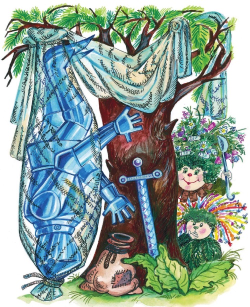 – Как ты не понимаешь – мы быстрее вернём папу! Смотри, какие большие доспехи! А если ещё их расплющить…