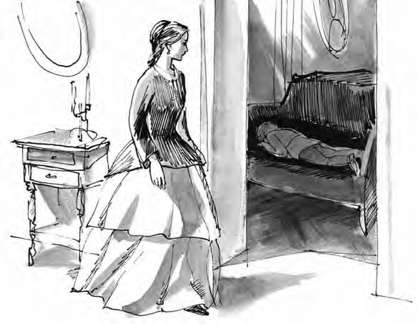 С помертвелым лицом ждет мать исхода, сидя одна в гостиной. Каждый вопль рвет ее за самое сердце, каждый удар терзает до самого дна ее душу.