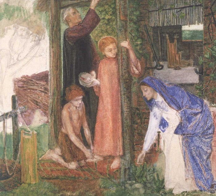 Данте Габриэль Россетти ПАСХА В СВЯТОМ СЕМЕЙСТВЕ Бумага, акварель. 1856 Галерея Тейт, Лондон