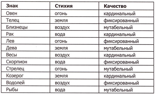 Сопоставляя свойства стихий и качеств, вы получите краткую, но всеобъемлющую характеристику каждого знака.