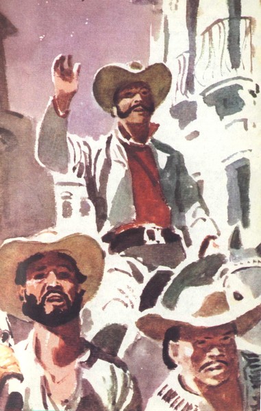 В день мятежа он не сидел, сложив на груди руки. Рука его сжимала приклад лежавшего на пороге ружья; и он ни разу не взглянул на белый купол Игуэроты, холодная чистота которого представлялась такой далекой от жаркой и знойной земли. Его глаза с любопытством оглядывали Кампо. То здесь, то там медленно оседали высокие столбы пыли. На безоблачном небе ослепительно сверкало солнце. Какие-то люди, сбившись кучками, бежали по равнине; иные вдруг останавливались; и не смолкал треск выстрелов, звучавших вразнобой, — в горячем неподвижном воздухе он смягчался и походил на журчание ручья. Во всю мочь мчались одинокие фигурки пеших беглецов. Налетали друг на друга верховые и, завертевшись волчком в короткой стычке, уносились в разные стороны во весь опор. Джорджо видел: вот на полном скаку внезапно упали и лошадь, и всадник, исчезли, будто в пропасть провалились, и все перипетии боя на словно чудом ожившей равнине напоминали жуткую игру, которую вели между собой пешие и конные карлики, вопившие во всю мочь своих крохотных глоток у подножья горы, которая казалась исполинским символом тишины. Джорджо никогда еще не видел, чтобы на этом участке Кампо так бушевала, так кипела жизнь; он не мог единым взглядом охватить поле битвы; заслонил рукой глаза, но внезапно вздрогнул: где-то совсем рядом земля загудела под ударами множества копыт.