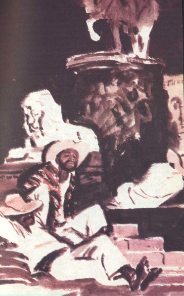 — Это распорядитель нашего лагеря, — сказал главный инженер. — Сейчас я должен отослать его назад в Сулако, поскольку наши изыскательские работы переносятся в долину Санта Марты. Бесценный малый, мне ссудил его на время капитан Митчелл из ОПН. Весьма любезно с его стороны. Чарлз Гулд посоветовал мне, не задумываясь, воспользоваться любезностью Митчелла. Этот малый на редкость умело управляется со здешними пеонами и погонщиками мулов. За все время у нас не было даже пустячного недоразумения. Он прихватит с собой несколько землекопов пеонов и будет сопровождать ваш дилижанс до самого Сулако. Дорога скверная, а с таким провожатым вы можете не опасаться, что свалитесь в пропасть. Он обещал мне, что на протяжении всего пути будет так о вас заботиться, словно вы его родной отец.