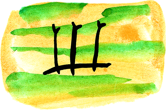 – Мы должны придумать новую картинку для последнего звука. Й-и-и-ш, йиш, й-и-и! – протянула она. – Знаешь, очень похоже на обозначенный тремя копьями звук. Вот только нужно что-то ещё прибавить, чтобы понять – это именно небо… Давай нарисуем птицу, летящую в небе! И вот что она нарисовала.