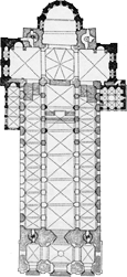 Рис. 114. Схематический план кафедрального собора в Реймсе позволяет понять различие его с собором в Шпайере. Кафедральный собор строился ровно сто лет — с 1211 по 1311 г.