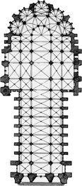 Рис. 119. Зимой в мастерских подготавливали каменные детали для пилонов. В Реймсе они состояли из двух полукругов, одного продолговатого камня на два настенных пилона и, собственно, двух настенных пилонов. Эти пять отдельных деталей при повороте примерно на 90° (см. рис.) насаживались одна на другую, ибо в противном случае пилоны не могли бы быть устойчивыми.