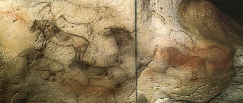 В 1994 г. исследователи обнаружили на юге Франции пещеру с еще более поразительными наскальными рисунками. На них изображены носороги, львы, зубры, медведи и мамонт. Подобно лошадям в пещере Экаин, большинство животных движутся в одном направлении. Среди них можно выделить отдельные группки животных, например, сражающихся носорогов или обнюхивающих друг друга медведей. Время создания рисунков точно не определено. Вполне вероятно, что это самые древние произведения искусства, найденные на сегодняшний день. Одни исследователи высказывают мнение, что живопись была выполнена около 20 000 лет назад, другие говорят о 30 000 лет.