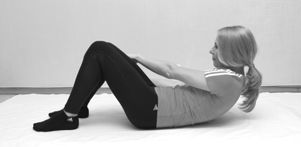 Даже если вам не удалось сесть, а вы смогли только слегка приблизить грудь к коленям, задержитесь в этом положении на 1–2 секунды.
