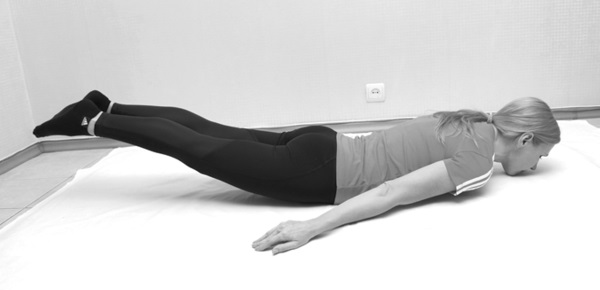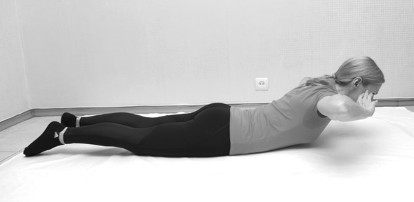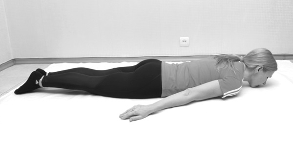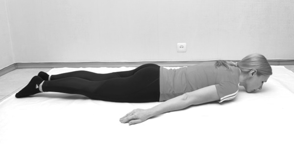 ИСХОДНОЕ ПОЛОЖЕНИЕ: лежа на животе, ноги прямые. Руки вытянуты вдоль тела и расслаблены.
