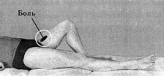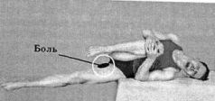 Рис. 88. Лечебная поза-движение при болях в верхней внутренней части бедра