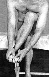Рис. 90. Лечебная поза-движение при болях в пальцах ноги
