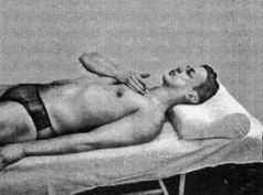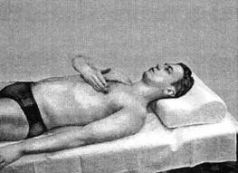 Лечебное движение выполнять лежа на спине, под голову подложить маленькую подушечку. Наружную поверхность правой кисти установить по передней срединной линии тела на 2 пальца выше уровня сосков.