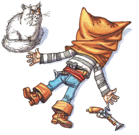 Она поставила тарелку с пирожными на телефонный столик, подобрала с полу оброненный пиратом мешок и ловко надела на голову Тринадцатому. Ослеплённый пират ослабил хватку и вскоре повалился на пол – мешок-то был волшебный.