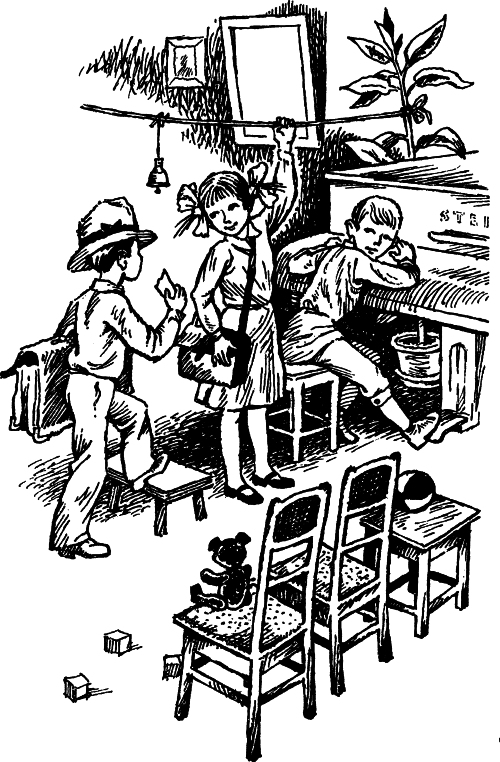 Вот забрались они поскорей в погреб, стали там бегать и прыгать. Прыгали, прыгали и нечаянно свалились в горшок со сметаной.