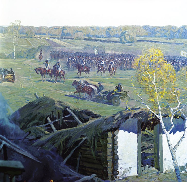 Репродукция фрагмента панорамы Бородинской битвы «Контратака русских кирасир» худ. Ф. А. Рубо. Холст, масло. 1910–1912 гг. Из Музея-панорамы «Бородинская битва»