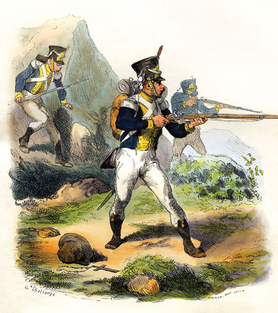 «Только что прибывшие полки королевской гвардии очутились лицом к лицу с неприятельской кавалерией. Разбившись на каре, мы устремились ей навстречу. Русские почти уже подступили к итальянским батареям и заставили их прекратить огонь; затем они опрокинули полки Дельзона. В этот-то момент они очутились перед королевской гвардией, поджидающей их со скрещенными штыками. После одной неудачной попытки русские в конце концов были отброшены сильным огнем с нашей стороны и побежали во всю прыть. Легкая кавалерия Орнано, которая перед тем должна была укрываться за нашими рядами, теперь желает взять свой реванш. С помощью драгун и отряда почетной стражи она вновь нападает на русских. Эти последние, страшно напуганные, спешно бегут через Войну и Колочу и не осмеливаются возвращаться».