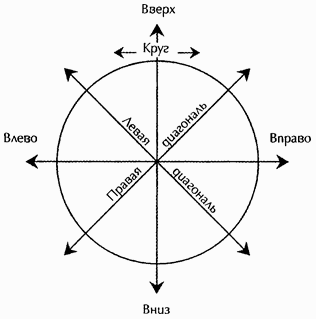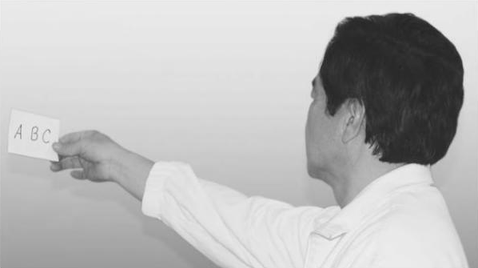 Движение четвертое. Сосредоточившись на одной из трех букв, нарисуйте листом большой круг на расстоянии вытянутой руки, непрерывно удерживая фокус зрения на выбранной букве. Проделайте это движение по три раза как каждым глазом, так и обоими глазами одновременно.