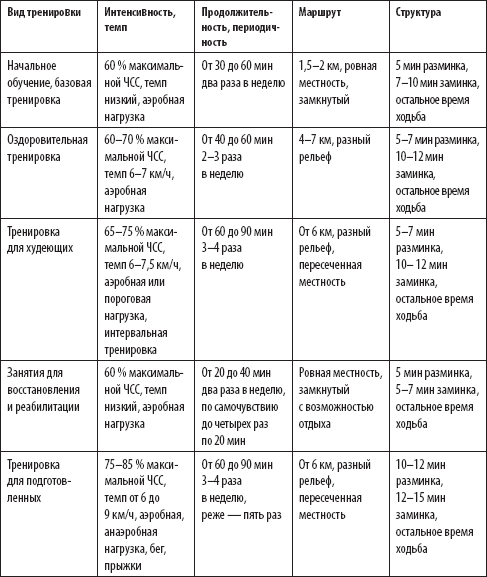 Таблица 2.2. Виды тренировок по целям. Особенности проведения
