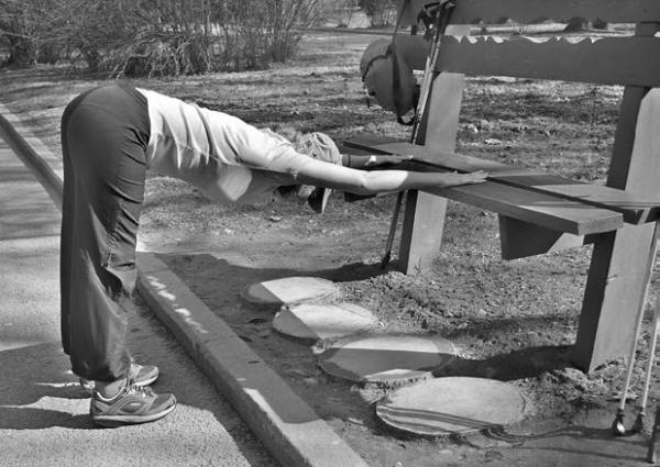Я городской житель, и, хотя в Москве много парков и зеленых зон, где можно заниматься ходьбой, кататься на велосипеде, роликах, а зимой – на лыжах, мне нравится использовать городские «особенности». В любом городе много лестниц, бордюров, скамеек и всевозможных цветочных каменных клумб. Все это может служить своеобразными тренажерами для гимнастики после ходьбы или бега.