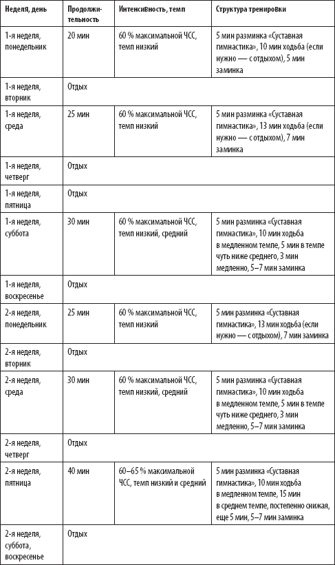 Возможно, начав тренироваться, вы обнаружите, что можете двигаться с палками только 20–25 мин, в этом случае растяните план на 3–4 недели и планируйте отдых по два дня. Как только вы почувствуете в себе силы, постарайтесь вернуться к первоначальному двухнедельному плану с отдыхом через день. Если у вас есть проблемы с сердцем, обязательно контролируйте пульс (желательно заниматься с пульсометром) и придерживайтесь рекомендаций врача, не выходите за пределы установленной интенсивности. Как известно, лучше меньше, да лучше!