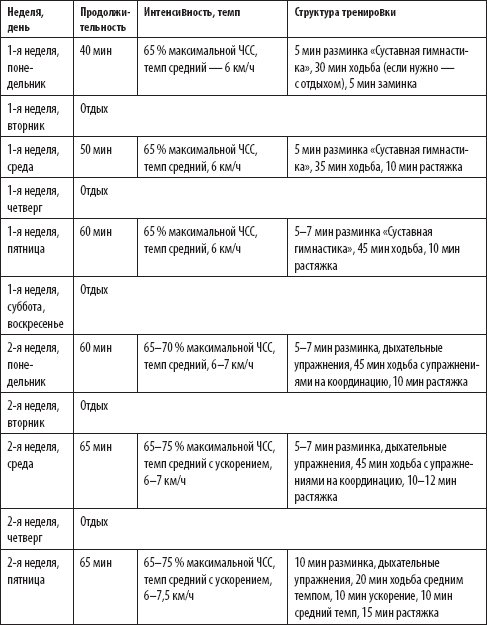 Ниже представлен план тренировок по ходьбе с палками для восстановления после болезни или травм, продолжительность – 14 дней (табл. 4.1).