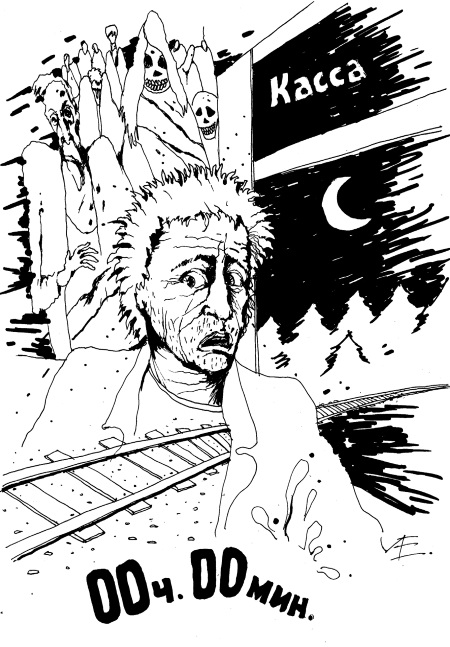 В Москве Парамонов перекрестился, выскочил из вагона и побежал к вокзалу. В два часа ночи он был совершенно безлюдным. Шаги Парамонова гулко отдавались во всех уголках здания, и проскочив турникет, он поспешил на улицу. Там он добежал до остановки такси, сел в первую попавшуюся машину и только после этого с облегчением вздохнул. «Куда?» — не оборачиваясь, мрачно спросил водитель. «Домой», — как-то даже весело ответил Парамонов. «Домой, так домой», — проговорил водитель. Машина рванулась с места и водитель тихо добавил: «Лично я уже дома». Парамонов хотел было назвать улицу, на которой жил, но глянул в зеркало заднего вида и осекся. Он увидел, что у водителя начисто отсутствует добрая половина лица. «Останови», — сиплым голосом едва выговорил Парамонов, но водитель лишь сильнее надавил на газ.