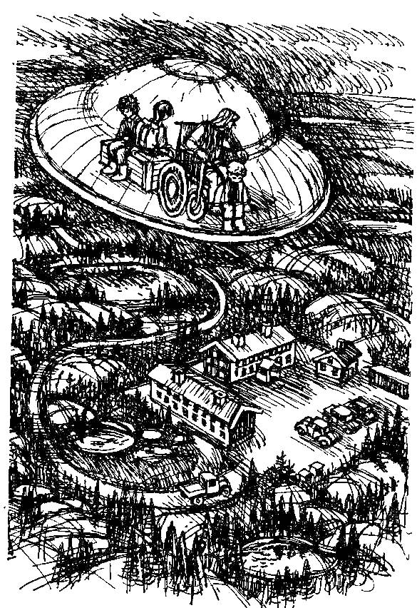 – Да, наверно, так, – согласился Бьёрнар. – В летающей тарелке есть узкие щели, через которые можно смотреть.