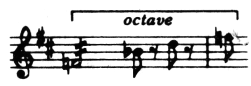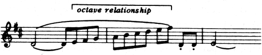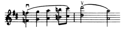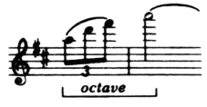 Поэтому скрипка начинает с октавного хода, который, приводя в конце концов к сольной теме, приобретает следующий вид: