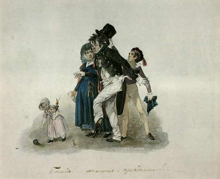 Господа, женитесь, пригодится! Бумага, акварель. Середина 1840-х гг.
