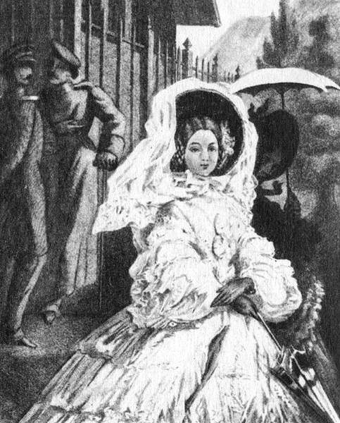 Княжна Мэри на прогулке. Иллюстрация к роману М. Ю. Лермонтова «Герой нашего времени». Начало 60-х годов XIX в. Гравюра