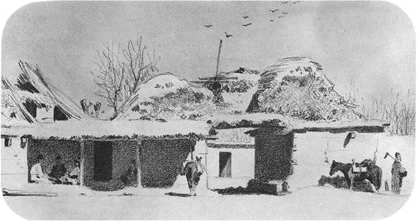Постоялый двор близ Ташкента. 1867 г. Рисунок