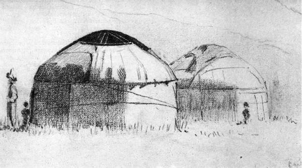 Казахские кибитки. 1867 г. Рисунок