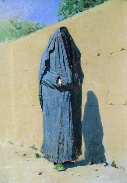 Композиционно просто решена картина «Узбекская женщина в Ташкенте». На фоне глухой глинобитной стены движется бесформенная фигура женщины, укутанной в покрывало. Лицо женщины закрывает, согласно мусульманским обычаям, чалван. Темная расплывчатая тень на стене как бы оттеняет уродливость фигуры женщины-затворницы. Бесхитростное по своему сюжету полотно, списанное с натуры, напоминает о бесправии, тяжелой доле женщины-мусульманки и воспринимается зрителем как широкое социальное обобщение.