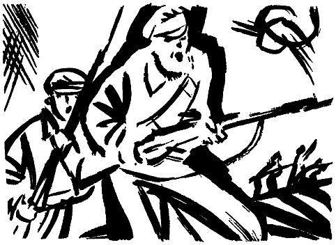 Чего уж, сам винтовку взял! Сорвался я с места. Бегу впритирку к кустам. Пули жигают вокруг, как осы. На, возьми, леший… Штыком задел за куст. На всем ходу меня развернуло в обратную сторону. Топчусь у куста. Бац! Залепило пулей — приклад в щепки.