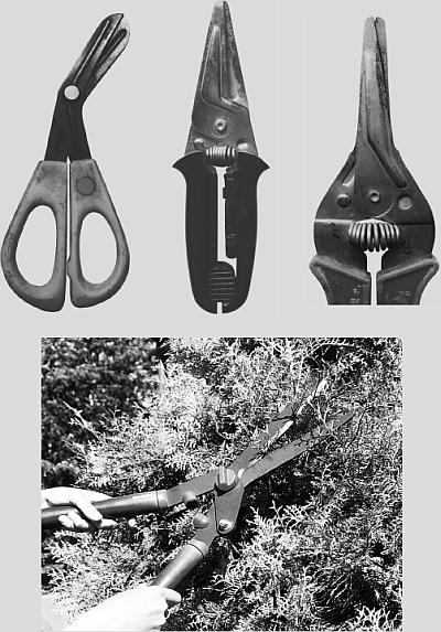 Так называемые хозяйственные ножницы, в перечне достоинств которых указывается способность резать ветки растений, для обрезки не годятся! Ни по удобству применения, ни по качеству получаемых срезов этот инструмент отнести к садовому нельзя. Зато они прекрасно подходят для нарезки проволоки, веревок, этикеток и т. п.