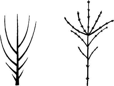 В плодоводстве принято считать ветви, отходящие непосредственно от ствола, ветвями первого порядка, не принимая в расчет центральную ось. В ботанике первым порядком считается главная, центральная ось (ствол), а отходящие от него ветви – вторым и т. д. Отсюда различия в отсчете порядков ветвления на единицу.