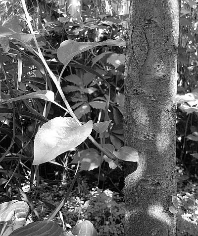 «Дикая» поросль у привитых растений. Не менее, если не более важно вовремя удалять прикорневую поросль. У молодых растений подвой еще способен ослабить и даже совсем заглушить привой. У старых растений обильное появление поросли подвоя обычно сигнализирует о неблагополучии привойной части.