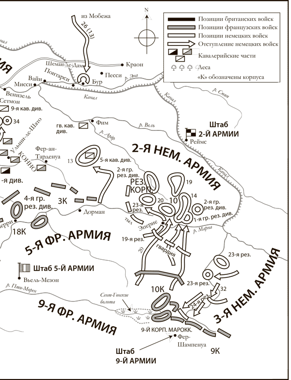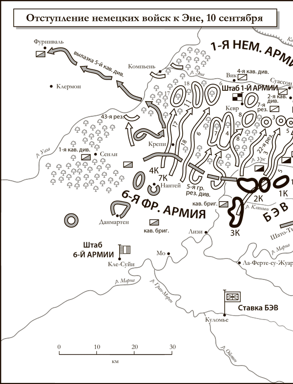 К утру 14 сентября тысячи британцев обосновались на северном берегу Эны – однако состояние их было плачевно. Промокшие до нитки, обессиленные, многие давно не евшие, они закрепились на позициях сразу над лесом, росшим вдоль Шеман-де-Дам. На каждом участке они оказывались на виду у немцев на открытой в восточном направлении местности, забиравшей чуть вверх. В последующие дни британцы силились захватить гряду, а немцы раз за разом пытались отогнать их назад к реке. Обе стороны потерпели неудачу и понесли тяжелые потери. Ненастная погода угнетала. Однако боевой дух упал бы еще сильнее, если бы воюющие армии знали, что фронт вдоль Шеман-де-Дам останется почти неизменным на протяжении четырех лет, все это время отнимая бессчетные жизни.