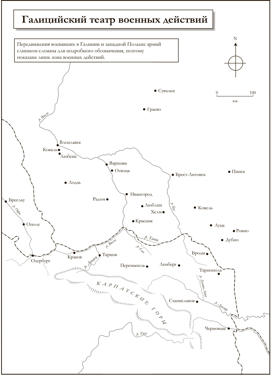 Конрад, узнав об отступлении русских, исполнился самодовольства. Продвигаясь вслед за ними на польскую территорию, его авангард далеко оторвался от путей снабжения, и начался привычный габсбургский сумбур. Колонны конной артиллерии лезли вперед пехоты. Из-за противоречивых приказов и контрприказов некоторые части ходили кругами. В отличие от Франции с ее почти непрерывными линиями фронта, на бескрайних просторах востока части терялись иногда на несколько дней, а о местонахождении противника можно было разве что догадываться. Зачастую дневное довольствие не успевали подвезти уставшим войскам до наступления темноты. Штабной офицер Теодор Риттер Цейнек с негодованием отзывался о kinderkrankheiten – «болезнях роста», – аукнувшихся кавалерии серьезными потерями: кавалеристы с глупой беспечностью лихо выскакивали навстречу противнику, как делали их деды в середине XIX века {779} . Аэропланы были редкостью у обеих воюющих сторон, и недостаточная рекогносцировка вызвала с 28 по 30 августа очередную серию столкновений, которая обернулась для армий Иванова потерей сотни орудий и 20 000 пленных.
