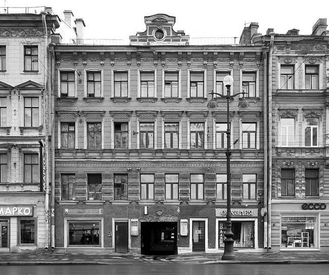 По этому адресу в 1930-х годах находился Ленкублит (Ленинградская комиссия по улучшению быта литераторов), проходили встречи писателей. Позднее здесь был ресторан «Универсаль». В 1986 году он был оформлен художниками из ГДР. Затем нижние этажи занимали Рускобанк и кафетерий. Сегодня в этих помещениях – банк «Петровский», суши-бар «Такао» и кафе «Теремок». В здании размещаются также Дом быта, рекламные и туристические агентства.