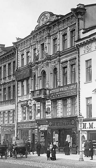 В 1918–1929 годах в доме работало издательство просветительского товарищества «Начатки знаний» во главе с И.Р. Белопольским. Издательство выпускало педагогическую, естественно-научную и детскую литературу. В 1920-х годах открылся частный «Театр переживаний», который сменил театр «Гротеск», а затем «Театр миниатюр Фокина».