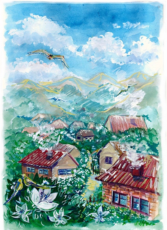 Разнообразные пейзажи то и дело сменяли друг друга. За Деревней лежали обширные поля, а за ними вздымались горы — высокие серо-голубые и небольшие жёлто-рыжие.