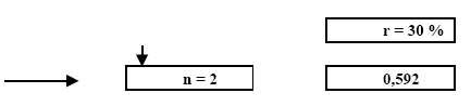 Пример использования таблицы:Рассчитать количество денег необходимых для инвестирования сегодня под 30 % годовых, чтобы через 2 г. получить 1000 тыс. руб.