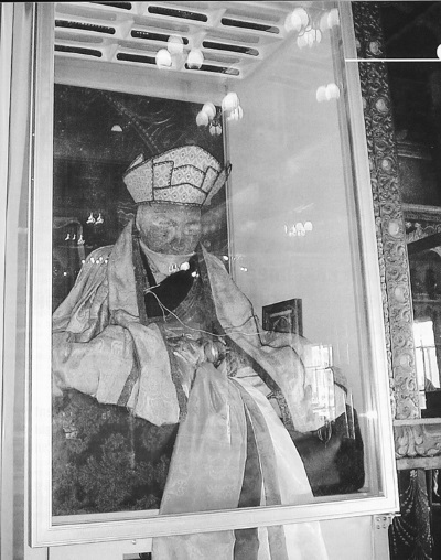 Тело было перенесено в Иволгинский дацан, где оно отныне и хранится. Семь раз в году, в дни больших буддийских хуралов, его вынимают из стеклянного саркофага, где оно находится в остальное время, и выставляют для поклонения верующим (рис. 7).