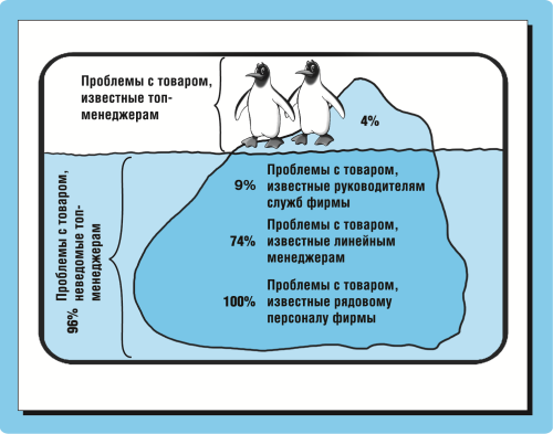 Иными словами, в компаниях, где возникают такие «щадящие информационные диеты» для менеджеров, отсутствуют восходящие потоки информации, нет регулярного анализа удовлетворенности покупателей, не используется система анонимного анкетирования рядового персонала. В итоге менеджеры компании имеют неверное представление о восприятии ее продуктов конечными потребителями, а значит, принимают неверные маркетинговые решения (по некоторым оценкам, именно так обстоит, например, дело в штаб-квартире компании «Microsoft»).