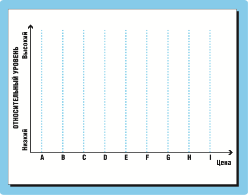 О чем идет речь? О том, что менеджеру полезно вместе с маркетологами периодически проверять: а как выглядит профиль ценности наших продуктов в глазах потребителей и как он соотносится с профилями ценности наших основных конкурентов? Речь идет о вполне практическом упражнении, для которого можно воспользоваться специальным макетом (см. рис. 43–1). Здесь по горизонтальной оси вместо букв A-I вы должны подставить те параметры, которые наиболее важны для ваших клиентов при решении вопроса о том, какой бренд или какого поставщика выбрать. Кстати, настоятельно рекомендуется, чтобы выбор этих параметров осуществляли не ваши инженеры, конструкторы, дизайнеры и т. д., т. е. те, кто создает ваши продукты, а сотрудники отдела продаж или специально приглашенные исследовательские фирмы; иными словами, те, кто понимает, как смотрит на ваш продукт конечный потребитель. К ним же нужно обратиться с просьбой отметить крестиком по каждой оси то, насколько высоко оценивают по этому параметру потребители ваш продукт и продукты основных конкурентов (не более двух, а то вы запутаетесь в переплетениях линий). Теперь соедините прямыми линиями крестики, описывающие оценку параметров вашего продукта и продуктов ваших конкурентов, — и профили ценности предстанут перед вашими глазами!