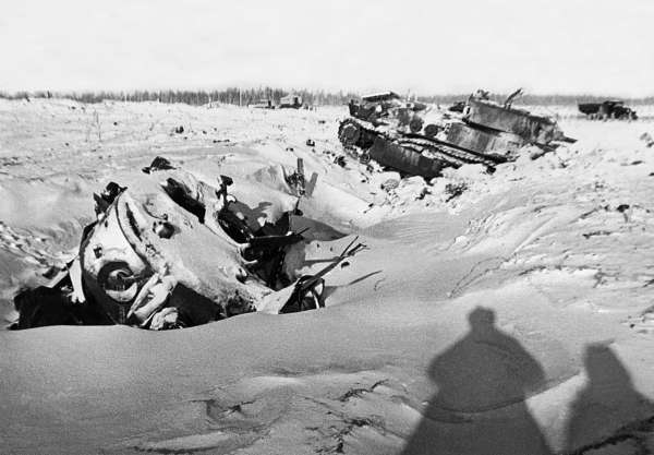 Еще два Т-28, уничтоженные финской артиллерией в районе высоты 65,5. Как и предыдущее фото, снимок сделан после прорыва «линии Маннергейма» в феврале 1940 года (АСКМ).