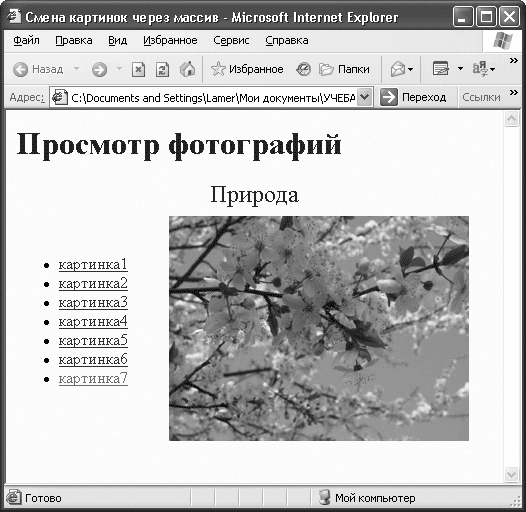 Данный сценарий позволяет просматривать различные фотографии природы на веб-странице (рис. 10.24).