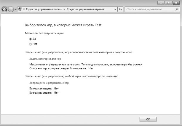 В верхней части окна находится переключатель, с помощью которого вы можете разрешить или запретить запуск игр вообще. Так, чтобы разрешить запуск игр, необходимо установить переключатель в положение Да, в противном случае – в положение Нет.