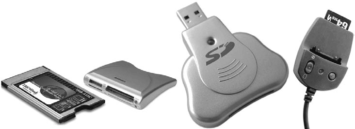 Большинство камер не комплектуется считывающим устройством, и вам, возможно, придется его приобрести. Рынок предлагает множество таких устройств (рис. 2.3). Среди них как способные работать практически со всеми видами памяти, так и специализированные, рассчитанные только на один формат.